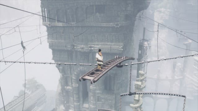 А ведь загадки в The Last Guardian в большинстве своём интересные. Это выверенное сочетание несложной акробатики, командной работы, а также манипуляций с предметами и устройствами. Нельзя не восхититься тем, как разработчики заставляют использовать таланты Трику для преодоления преград, что чередуется с захватывающими дух моментами. Иногда мальчик и зверь разделяются. В приключении встречаются всего несколько посредственных головоломок, которые сводятся к методу подбора.