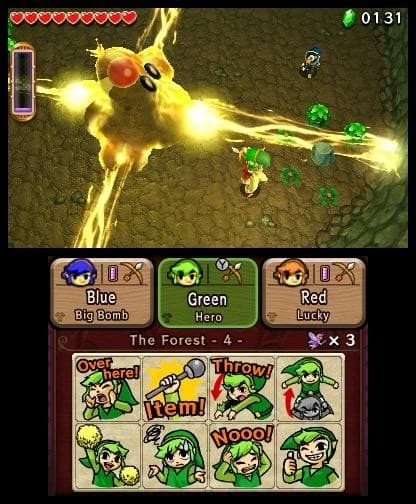 В этом режиме один игрок контролирует сразу трех героев и в любое мгновение переключается между ними. Управлять разрешают только одним, пока два других стоят без движения. Понятие «искусственный интеллект напарников» в Tri Force Heroes отсутствует. Кремниевые болваны сами ни на что способны. Они обладают иммунитетом к ударам противников, когда находятся в состоянии покоя, но падение в бездну не проходит бесследно. Запас жизней один на всех.