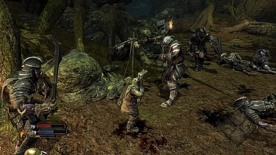 Упоение кровью и насилием длится недолго. Придумав альтернативную историю, авторы не стали размениваться на новых обитателей Средиземья. Героям противостоят те же орки, урук-хаи и прочие гоблины. Одни набрасываются на братство целой стаей. Другие закованы в броню, третьи прячутся вдали со стрелковым оружием, четвертые размахивают сразу двумя клинками. Иногда они оставляют отряд в покое и на сцене появляются другие угрозы. Но последние отличаются лишь внешним видом, а не моделью поведения.Кроме пары навыков, работающих на благо всего коллектива, интересных моментов в кооперативном взаимодействии не наблюдается. В этом аспекте игра традиционна настолько, насколько традиционен альянс мага, разбойника и воина. Защита, прикрытие тылов, очевидное распределение обязанностей в рамках скудных возможностей и оживление павших соратников – никаких попыток выйти за рамки канонов.Чувство меры если и заходило в офис к разработчикам, то было зверски убито, расчленено, а его останки распихали по мусорным мешкам и закопали на заднем дворе. Буквально каждая битва сильно растянута. Враги бегут нескончаемым потоком. Едва успел уничтожить десяток орков или нежити, как к ним на подмогу уже спешит подкрепление. И так из раза в раз, из раза в раз на одной и той же арене... После надцатого поединка понимаешь, почему героям не выделили армию. Они играючи занесут троллей в список вымерших созданий, лишь изредка прибегая к помощи орла-переростка. Если бы их отправили в Мордор с остальными, они бы с ноги распахнули пограничные врата, неспешно прогулялись до башни и натянули Саурону глаз на кольцо.Помимо прочего, в игре нет понятия захвата цели. Герой атакует в указанном направлении, и все. Поэтому нередки ситуации, когда пытаешься добить лежащего на земле орка, а секира попадает в стоящего рядом недруга.