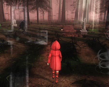 Шесть виртуальных человеческих душ загубит игрок, и от этого не уйти и не убежать. Не придется марать руки в крови, мучить и насиловать, но необходимо выбрать именно тот путь, который приведет каждую героиню к своей собственной трагедии. Завязка не противоречит первоисточнику – каждая глава приключений заканчивается в доме бабушки. Но к скромному жилищу почтенной пенсионерки ведет не залитая ярким солнечным светом дорожка. Это вообще не тот ПУТЬ! Осторожных и послушных игроков, выбравших самую прямую дорогу, просто отправят по второму кругу.Нужный маршрут пролегает через темный-темный лес, где среди кустов и деревьев шуршат чужие шаги, шумно дышат невидимые наблюдатели, а в условленных местах оживают призраки прошлого. Звериные тропы сквозь туман ведут к заброшенному кладбищу, детской игровой площадке, озеру, лугу с соломенным чучелом, сцене театра и к лагерю дровосеков. Именно здесь поджидает свою «красную шапочку» зубастый хищник и именно с ним обязательно должна состояться долгожданная встреча. Пока не встретили волка, к бабушке ходить, в принципе, бессмысленно.Вторая наша обязанность – собрать или использовать во время прогулки все предметы-символы, намекающие на характер девчонок, их тайные желания, бессознательные страхи и те странные события, что останутся за кадром. Интерактивный фильм сводит действия игрока к минимуму, но даже после многокилометровых забегов по лесу в поисках очередного кресла или граммофона, наша роль маленькой не кажется. Мы и актеры, и режиссеры, и работники сцены в разыгранном философском спектакле.