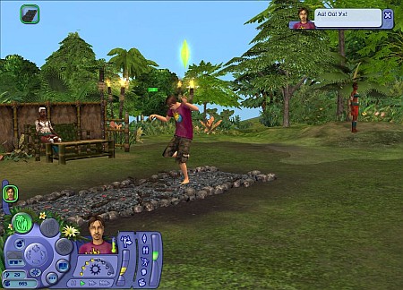 Если внимательно приглядеться, то бытовые условия на острове мало чем отличаются от обычного существования симов. Стоит только перешагнуть коротенький период одиночества, как все возвращается на круги своя, только со стилизацией под местную действительность. Вместо денег – материалы, которым отведена роль главного платежного средства на острове. Достаточно насобирать необходимое количество ресурсов, и сим «купит» простейшие предметы интерьера, одежду и еду, или отремонтирует найденную хижину по вкусу игрока. Не ждите обоев «в цветочек» и шикарных вечерних нарядов – в моде облезлая от тропической влажности краска, набедренные повязки и бамбуковая мебель. В пампасы шагнули даже мобильные телефоны – для звонков друг другу местные жители используют морские ракушки.