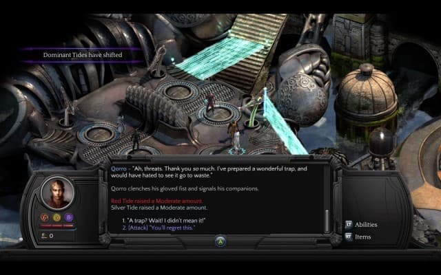 Ролевая система Torment: Tides of Numenera привлекает не только множеством взаимосвязанных параметров, но и важностью каждой характеристики и навыка. Стоит учитывать, что максимальный уровень развития тут 4-й (в каждом четыре подуровня), и выбирать, что улучшать, повышать или получать, необходимо очень внимательно. Точно так же стоит относиться к выбору вещей. В отличие от большинства современных ролевых игр, тут нет линейного повышения качества брони и оружия. Мощные артефакты и шифры единичны. Когда в руки попадает легендарный меч или кинжал, добытый путем множества манипуляций, начинаешь невольно подпрыгивать от восторга, ведь в этом мире другого такого нет! И сразу видишь, насколько возрастает эффективность отряда.