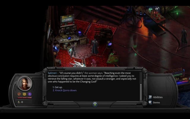 Интересно, что на итог бесед влияют не только навыки, но и характеристики. Дело в том, что если вы хотите кого-то в чём-то убедить, то на это надо потратить, в зависимости от прочих параметров, определённое количество очков Интеллекта, чтобы повысить шанс срабатывания аргумента. Очки восстанавливаются только после отдыха (весьма дорогостоящего), так что характеристики надо расходовать с умом. Одно дело, когда не получится договорится, и совсем другое, когда внезапно начинается «Кризис» (так здесь называют сражения), и там очки характеристик необходимо тратить уже на усиление ударов и спецспособностей.