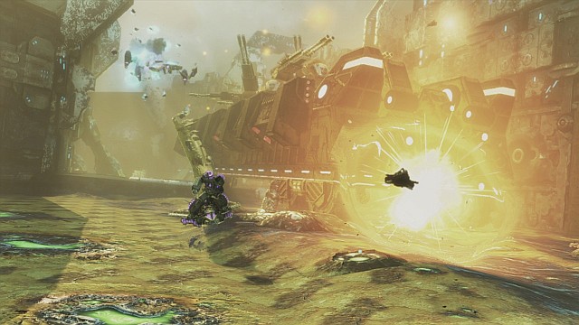 С целью придать происходящему ещё больше драйва, разработчики решили обратиться к опыту Call of Duty. Трансформеры убегают из разрушающейся базы, мчатся по разваливающемуся мосту под аккомпанемент взрывов, управляются со стационарными турелями и уничтожают постройки непомерных размеров.