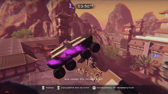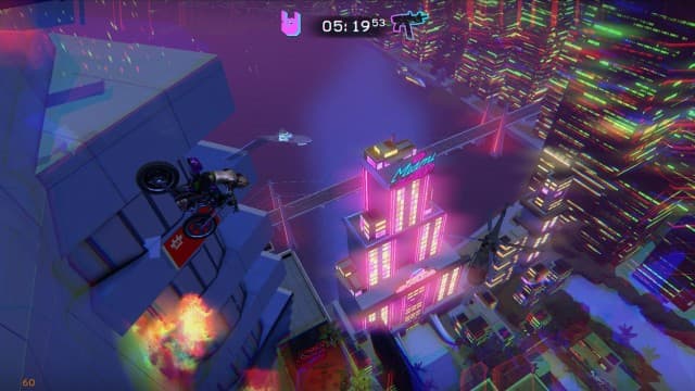 Даже десятки перезагрузок не остужают желание добраться до цели. Финиш встречаешь уставшим, измотанным, но довольным. В Trials of the Blood Dragon в распоряжении героев есть еще крюк-кошка. Протагонисты цепляются за определенные объекты и раскачиваются, чтобы перебраться через пропасть или избежать опасных ловушек. Интересное дополнение. Даже обидно, что ему уделено недостаточно внимания. Возможность стрелять во время езды тоже добавляет азарта в отдельных сценах.