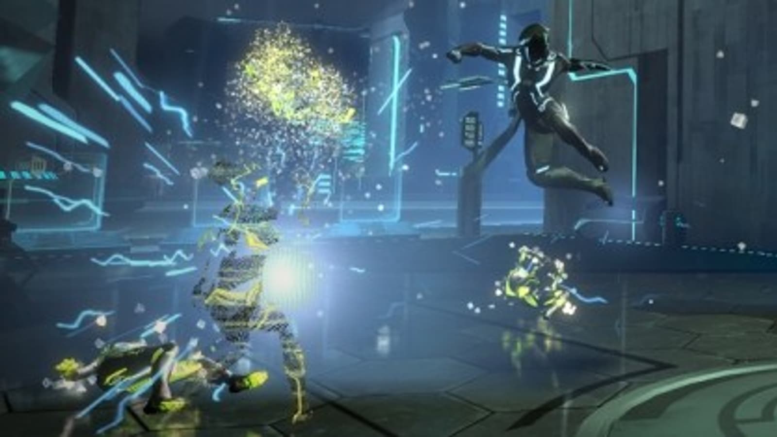 К боевой системе подошли более основательно и даже попытались внедрить оригинальные идеи. Лучше бы они этого не делали. В арсенале Монитора есть несколько видов световых дисков: один оснащён взрывоопасными зарядами, другой способен сильно замедлить неприятелей, третий значительно снижает их защитный потенциал. Недруги тоже обладают своими секретами. Отдельные виды вооружены щитами, некоторые выделяются повышенной ловкостью и скоростью, третьи вовсе обладают иммунитетом к базовым атакам. Видно, что авторы заложили толковый базис для динамичных схваток. Однако сражения превращаются в вакханалию из световых эффектов и мельтешащих дисков. Понять в пылу схватки, кто кого бьёт, очень и очень непросто. Герой пытается скрыться, а получает в спину серию ударов. Прячется за углом, достают и там. Выяснить, долетит диск до врага или развернётся прямо перед его физиономией, можно исключительно методом проб и печальных ошибок. Оператор не спешит оказывать посильную помощь. Он то вальяжно поворачивает камеру и не желает показывать самое интересное, то внезапно нервно дёргается из стороны в сторону, не позволяя нормально наблюдать за ситуацией на поле брани. К счастью, в арсенале героя припрятана парочка ультимативных атак, что позволяет ему кое-как выжить. Оставшееся время остаётся лишь долбить, долбить, долбить… Единственно верная и действенная тактика.На этом несуразности не заканчиваются. Разработчики отказались от регенерации здоровья и ввели станции лечения, к которым бегаешь после и во время схватки. И вот тут несуразный платформинг дает о себе знать особо болезненными ударами - ведь тут элементарно умереть от неудачного прыжка. Наконец, многие арены болтаются над пространством. Совершили неудачный кульбит - вдохните поглубже, уймите злость, пора бы уже привыкнуть...