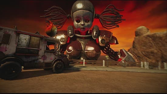 Зато схватки с боссами служат приятной отдушиной после неудачных заездов. Состоящие из нескольких этапов поединки с монструозными конструкциями знакомят с некоторыми хитростями механики и взрывают сознание масштабной постановкой и оформлением. При этом игра не изменяет себе и не скатывается в красочный аттракцион. Особо крутые ребята не позволяют расслабиться, проверяют все, чему научился герой за предыдущие соревнования, и все это под аккомпанемент умопомрачительных трюков. Естественно, по-настоящему игра раскрывается исключительно в мультиплеере. Хотя и с сюжетными перипетиями дозволено ознакомиться на пару с приятелем в режиме разделенного экрана. Но когда в смертельной схватке сходятся до 16 человек, кажется, что врата ада раскрылись и на грешную землю вырвались сущие демоны, готовые растерзать всех и вся на своём пути. Помимо стандартной мясорубки «каждый сам за себя», её командного собрата и борьбой с ограниченным числом «жизней», сетевая составляющая снабжена импровизацией на тему «меченого». Наибольший интерес представляет режим, объединяющий в себе «захват флага» и защиту обозначенной машины. Команда атакующих должна убить предводителя другой команды и принести его в жертву. После ритуала в небо запускается ядерная ракета, при помощи которой можно уничтожить статую – символ противоборствующей стороны. Защитники всеми правдами и неправдами вынуждены предотвратить такое развитие событий. Замечательный режим, для победы в котором требуется ко всем прочему ещё и слаженное взаимодействие. Для полного счастья не хватает лишь «Клетки». Эта забава мультиплеер по неясным причинам проигнорировала.