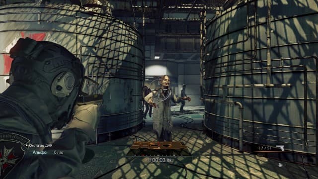 Играть в Umbrella Corps можно или одному (носиться по аренам и отстреливать одинаковых зомби, выполняя туповатые задания), или в онлайне убивать себе подобных. Сплитскрина нет, хотя он тут сам собой напрашивается. При этом-то количестве участников и простой графике! Выделенных серверов тоже нет, зато есть известная по старым играм серии Call of Duty технология peer-to-peer, когда один из игроков назначается хостом, а другие к нему подключаются с печальными последствиями. Ситуация, когда у одного игрока индикатор задержки сигнала горит зеленым, а у остальных — желтым или красным, встречаются постоянно. Если один или два игрока выходят, то всё, до конца партии никто не присоединится. Если выходит хост, начинается долгая миграция сервера, которая вполне может закончиться выпадением на главный экран.