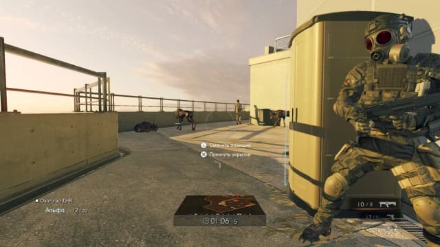 Что касается самой игры, то тут, как говорится, «всё чудесатее и чудесатее». Играем мы с самым неудобным видом от третьего лица, когда-либо реализованном в шутере. Башка героя и его рука занимают чуть ли не треть экрана! При этом угол зрения и без того очень узкий. Контролировать события, особенно с таким противоестественным звуковым дизайном, не получается. Герой способен прижиматься к укрытиям, и тогда камера, о чудо, отъезжает на комфортное расстояние. Правда, двигаться в этом режиме герой не может, стоит как прибитый. А вот прицельная стрельба ведется почему-то от первого лица, точнее от «лица» оружия. Камера прыгает на ствол, перпендикулярно торчащий из центра экрана, руки испаряются.