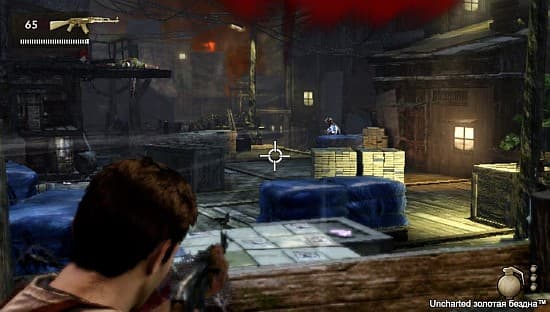 Иногда нас просят найти подсказку на найденном предмете. Как правило, он очень грязный. Прикосновениями к задней сенсорной панели мы его крутим и одновременно елозим пальцем по экрану, натирая, например, каску конкистадора до зеркального блеска, пока не проявится нужная надпись. Точно также, пальцем по экрану, мы делаем копии рисунков на каменных плитах, собираем паззлы из кусочков, открываем сейфы и многое другое. Нередко секреты спрятаны в сюжетных роликах. Поэтому не получается расслабившись следить за диалогами. Увидел что-то необычное - сразу хватай, чтобы пополнить свою коллекцию! Сенсорные возможности PS Vita тут распространяются буквально на все привычные виды деятельности. Так, больше нет необходимости остервенело давить кнопку «крест», чтобы Натан быстро карабкался по отвесным скалам. Достаточно провести пальцем по уступам, и авантюрист самостоятельно и без запинок повторит проложенный маршрут. Стрельба стала увлекательнее, поскольку тут в процесс прицеливания вовлекаются гироскопы. Надо только навести перекрестье в строну противника, а дальше процессом руководят кисти рук, которые мгновенно поворачивают консоль на нужный угол. Поначалу кажется неудобно. Однако потом свыкаешься с этой особенностью, лихо простреливая вражеские головы.