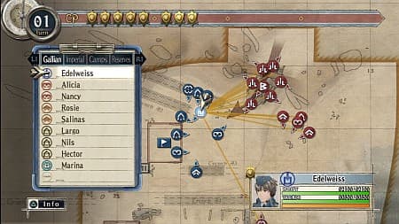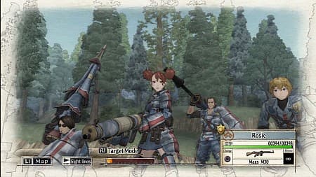 Однако здесь не только сюжетная линия и душевная музыка располагают к внимательному просмотру многочисленных роликов. Игра обладает уникальным графическим стилем «под плоский рисунок», будто каждый кадр выходит из-под руки художника, вооруженного простыми карандашами. Однако приятность такого подхода несколько смазывается отсутствием антиалиазинга. Право же, когда картина состоит из множества тонких линий, требовалось бы потратить чуть больше ресурсов на их сглаживание. Впрочем, о чем это мы. Вместо того, чтобы подробно расписывать игровую механику, нерешительно топчемся на месте, смакуя в уме сюжетные повороты и забавный вид альтернативной Европы, где солдаты с ружьями и базуками одеваются по форме средневековых рыцарей. Так и тянет оторваться и пойти пересмотреть несколько роликов... Отставить! Ведь перед нами не просто какая-то там японская ролевая игра, не очередной штамп, не клон и даже не римейк, а замечательная пошаговая тактическая стратегия с уникальной игровой механикой! Здесь надо рассчитывать каждый ход, а смак настоящей победы прочувствует только тот командир, который с максимальной эффективностью использует возможности отряда и быстро достигает поставленной цели.Бои не затянуты, не сказать даже, что слишком сложные – но если внимательный тактик сможет разложить предложенную «головоломку» быстро, то другой игрок будет ковыряться в несколько раз дольше, бестолково растрачивая человеческие ресурсы. А скорость тут имеет первоочередное значение. Чем быстрее справились, тем больше вы получите за это опыта и денег. И то и другое – валюта ценная, поскольку только за них можно совершенствовать бойцов в отряде. Хоть и несколько нетрадиционным способом.