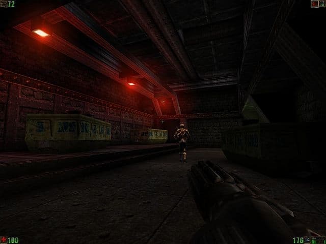 Да, первая встреча со Скаарджем (Skaarj) проводила неизгладимое впечатление. Всё потому, что эта зелёная тварь, похожая на хищника из одноимённого кинофильма, не мчалась тупо напролом и не стояла на одном месте. Вообще. Она быстро передвигалась, совершала кувырки в разные стороны, при этом больно жалила меткими выстрелами. Попытки подойти к зверю поближе закачивались плачевно из-за длинных лезвий на руках.