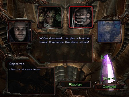 Строения, видите ли, возводятся на территории расползающегося «болота». Только поэтапный апгрейд основного здания позволяет добраться до новых технологий. Существа не штампуются в казармах, а мутируются из ползающих у рабочих под ногами личинок. Причем, уже готовых бойцов затем можно трансформировать в более специализированные варианты. В случае нападения неприятеля слабую армию проще закопать в землю. И давить массой, массой, штампуя беспрерывные потоки всепожирающей саранчи.