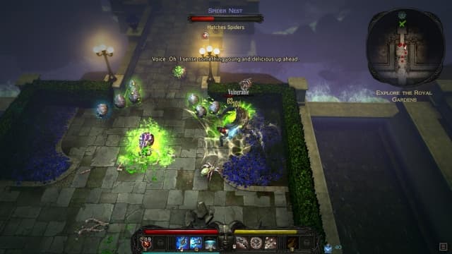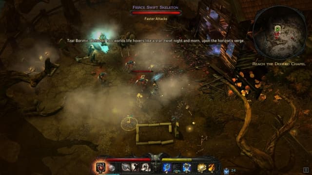 Зато авторы отлично воплотили основу боевика с видом сверху. В игре предусмотрена классическая для дьяблоидов схема управления с перемещением с помощью мыши. Но она неудобна. В режиме прямого контроля (когда за передвижение отвечают кнопки клавиатуры или геймпада) получается без проблем кувыркаться в толпе неприятелей, уклоняться от атак и кромсать врагов.