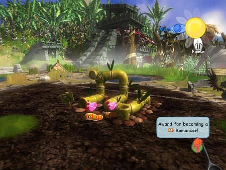Сытая и относительно довольная жизнью пиньята тут же поменяет монохромный окрас на цветастую шкурку. Все, теперь зверюшка в полной власти нового хозяина. По команде прекращает драку с другими. Ест, когда и кого прикажут. Размножается только по указанию свыше. Впрочем, для любовных игр нужно еще свить гнездышко или построить берлогу, чем займется соответствующий специалист. Но и это еще не все. Путь к потомству тернист и опасен. В коротенькой мини-игре нужно соединить двух влюбленных, помогая одному из них пройти по простому лабиринтику с взрывоопасными стенами.