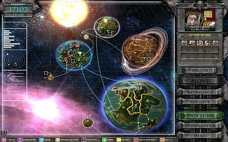 Пусть вас не обманывают громкие слова. Все «планеты» и «луны» нарисованы на глобальной карте и нарезаны на конечное число провинций, число которых всего на пяток превосходит набор из Dark Crusade. Каждая раса имеет свою столицу. После ее захвата засчитывается поражение, и фигурка вражеского военачальника снимается с «доски». Теперь досаждать не будет набегами.
