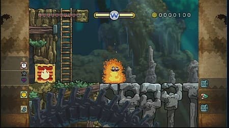 Это в самом начале Варио спокойно и с чувством собственного достоинства потрошит мешки и сундуки, взламывает ящики и каменные завалы, изучает лабиринты и механические вагонетки, ползает по трубам и карабкается по лианам. Как только сработает сигнализация, от вдумчивого созерцателя не останется и следа, а от полученных знаний останутся четкие инструкции: за следующим поворотом нужно сразу подпрыгнуть на зеленые струи фонтана, затем обязательно закрутить сальто на перекладине и ни в коем случае не забыть сгруппироваться при падении – редкая металлическая плита выдержит столкновение с разогнавшейся пятой точкой героя.