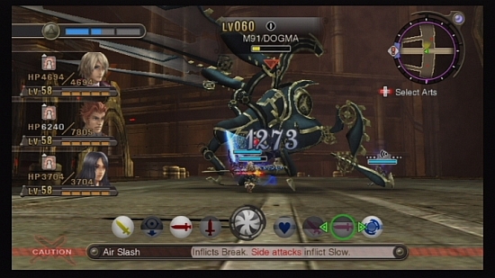 На поле боя разрешено находиться только трём приключенцам. Мудрёное командное взаимодействие обошло игру стороной, приказов подчинённым всего три: “следуйте за мной”, “атакуйте мою цель”, “действуйте по ситуации”. Хотя они сами прекрасно справляются с угрозами, вовремя используют свои уникальные особенности и воскрешают павшего предводителя. С целью разнообразить удовольствие от избиения врагов, разработчики не ограничивают нас только мальчуганом с мечом. Назначить командиром разрешают любого напарника. Можно примерить робу мага, «танка», лекаря со снайперской винтовкой и прочих. Умения у всех разные, хитрости и методы борьбы за выживание тоже.Помимо всего прочего Shulk является обладателем легендарного меча Monado. Этот клинок не только играет ключевую роль в сюжете, но и во время боевых столкновений оказывает ощутимую помощь. Также меч – единственное оружие, способное нанести представителям механической расы Mechon повреждения, а вот против людей Monado бесполезен. Подобные хитрости вынуждают менять состав отряда, приспосабливаться к новым условиям.Битвы постоянно усложняются, открываются новые грани для применения умений, расширяется список способностей. Учебник распухает от записей и объяснения хитросплетений механики. Все составляющие собраны руками мастеров в единый механизм, где нет ничего лишнего и бессмысленного. Если кажется, что какая-то маленькая деталь бесполезна, то вы просто не поняли, как её правильно использовать.