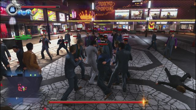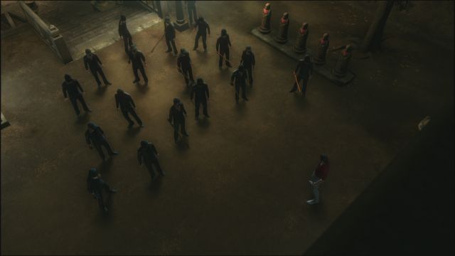 Драки против десятков бойцов не столько разнообразят кампанию, сколько добавляют головной боли. Стоит нырнуть в толпу, как попадаешь под град ударов, а враги блокируют выпады Кирю. Вероятность умереть увеличивается вместе с уровнем сложности. Да, приходится что-то придумывать, а не тупо бросаться навстречу опасности. Увы, иногда всё сводится к беготне по кругу с забрасыванием злодеев предметами и вылавливанию бандитов по одному-два человека. Хорошо, что массовых сражений в игре не так уж много, а мордобой на небольших пространствах с малым количеством участников избавлен от проблем.
