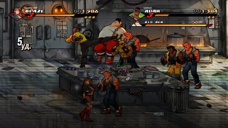При всей простоте боевой системы ядрёный мордобой с головой окунает в лучшие воспоминания о расцвете серии на консоли Sega Mega Drive. Сказываются как продуманные основные аспекты без серьёзных недостатков, так и необходимость подстраиваться под особенности неприятелей, у которых хватает раздражающих козырей в рукавах. В драку лезут полицейские с энергетическими щитами, каратисты, способные блокировать удары, увальни превращаются в шары и сбивают героев с ног, то появляются охранники с пистолетами, а потом их поддерживают мастера восточных единоборств. Обстоятельства вынуждают следить за расположением врагов на небольших аренах, быстро отпрыгивать от источников опасности и эффективно использовать холодное оружие, что валяется под ногами.
