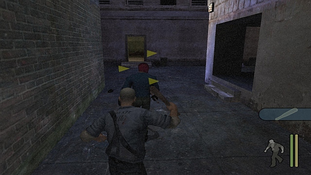 Кроме игры в кошки-мышки с подслеповатыми охотниками, Джеймс принимал участие в перестрелках. В эти моменты Manhunt превращался в средненький шутер. Туповатые бандиты, полицейские и спецназовцы не оказывали давления на позицию героя, бежали друг за дружкой навстречу смерти и с радостью подставляли головы под пули. Главной проблемой в ходе столкновений было слабое здоровье Джеймса.