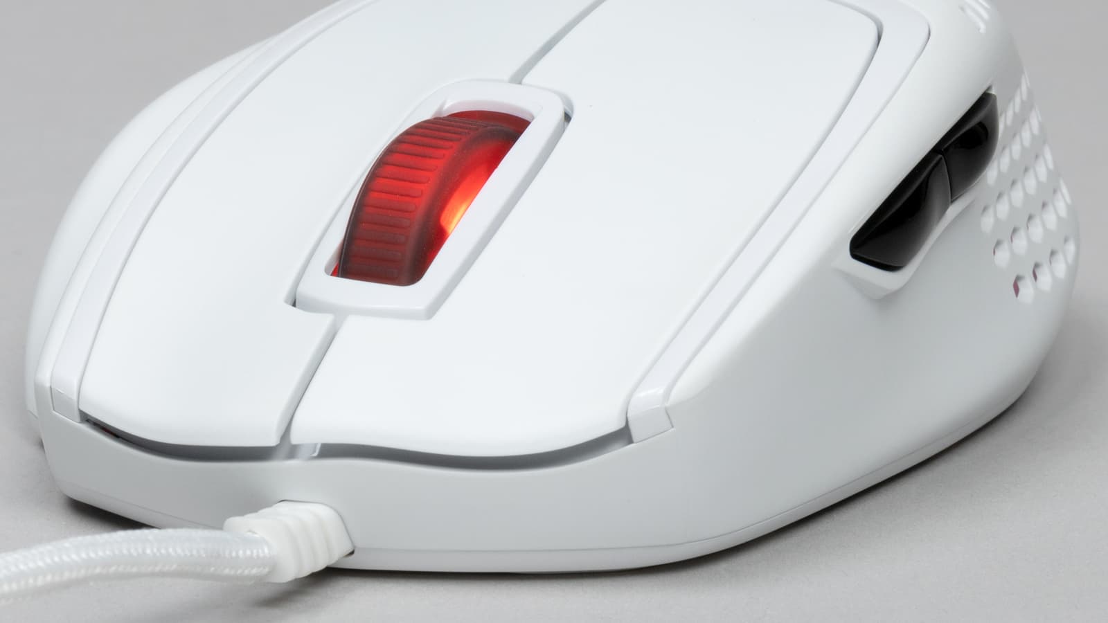И, конечно же, подсветка эффектно смотрится в таком «проветриваемом» корпусе. Особым многообразием она не отличается. Один светодиод подсвечивает колесо, другой — корпус. И хоть по сути это две разных зоны подсветки, разные цвета и эффекты к ним применить не получится. А еще колесо выполняет функцию индикатора режимов CPI, и при их переключении светится разными цветами в зависимости от того, какой режим выбран.