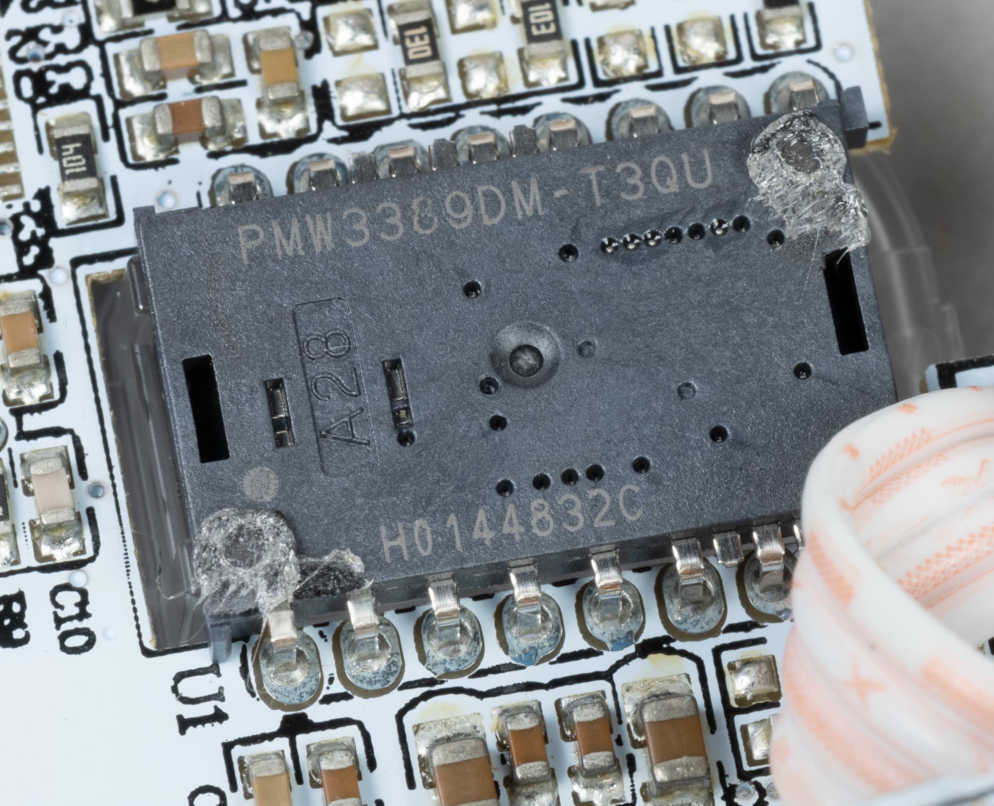 В мыши стоит 32-битный процессор ARM Cortex M0+ и 512 кБ памяти.