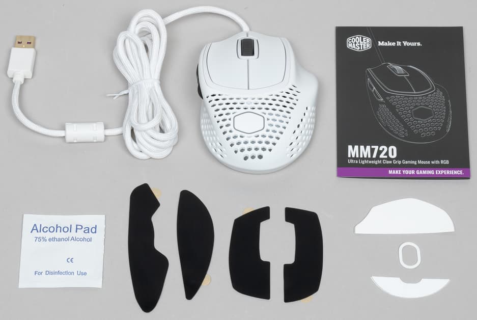 Я как человек с крупными ладонями не признаю никаких мышек, кроме больших и тяжёлых. И после моего личного 140-граммового грызуна, Cooler Master MM720 в руке я просто не почувствовал. Мышка весит 49 грамм.