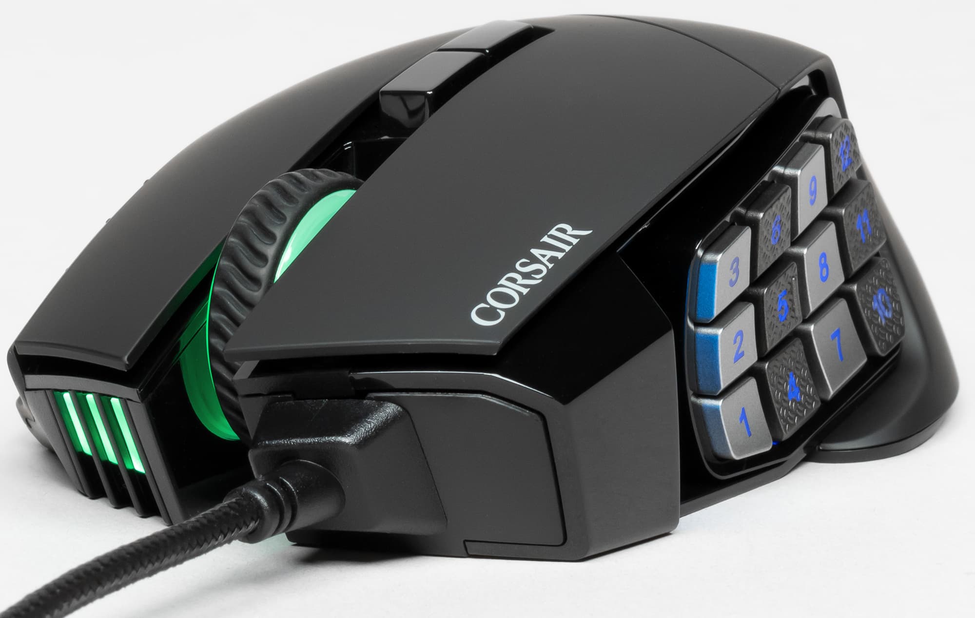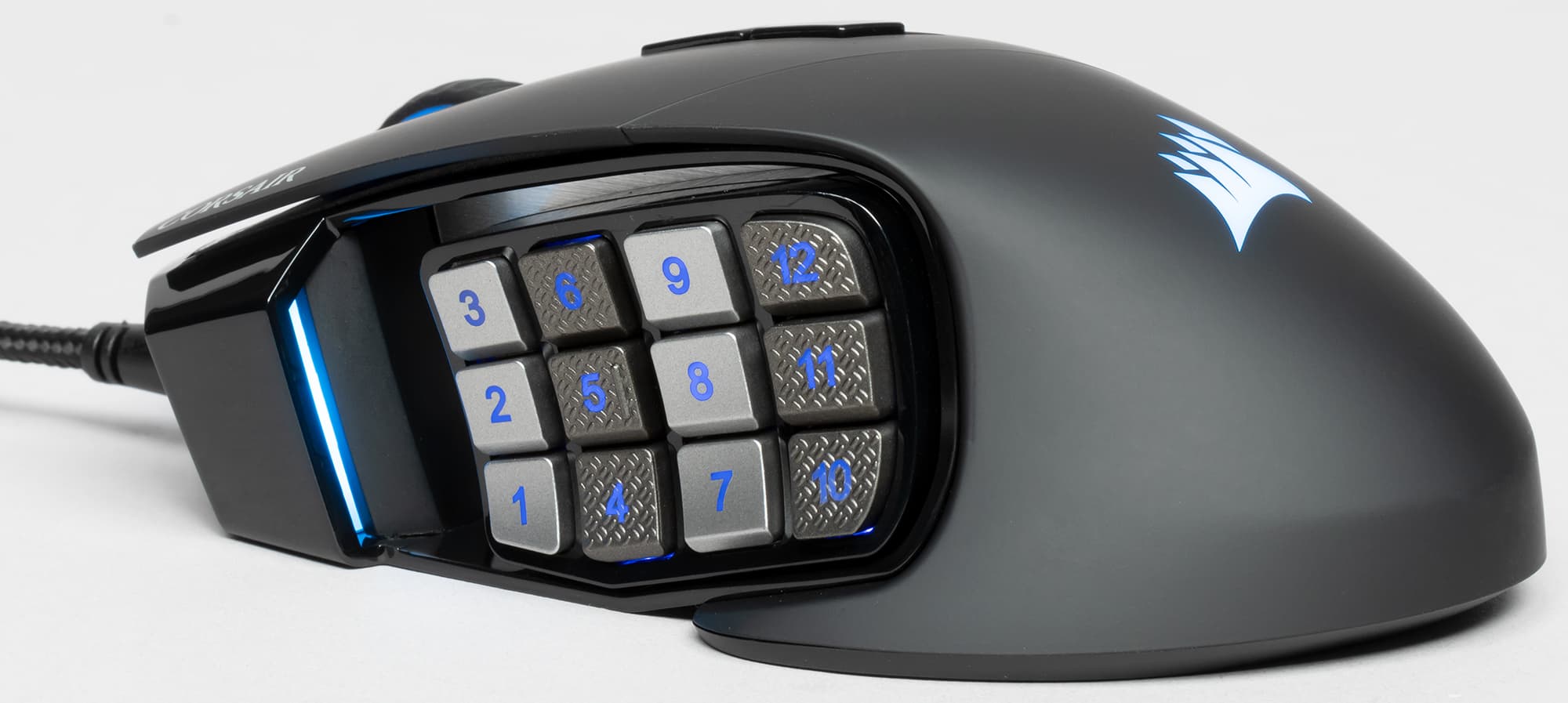 Многокнопочные мышки Corsair линейки Scimitar игрокам в MMO/MOBA известны давно. Младшая сестра Scimitar RGB Elite — Scimitar RGB — была у нас на тестах еще в далеком 2016 году. Чем они отличаются? «Элитная» мышь получила сенсор PixArt PMW3391 с разрешением до 18 000 CPI и шагом настройки в один пункт.