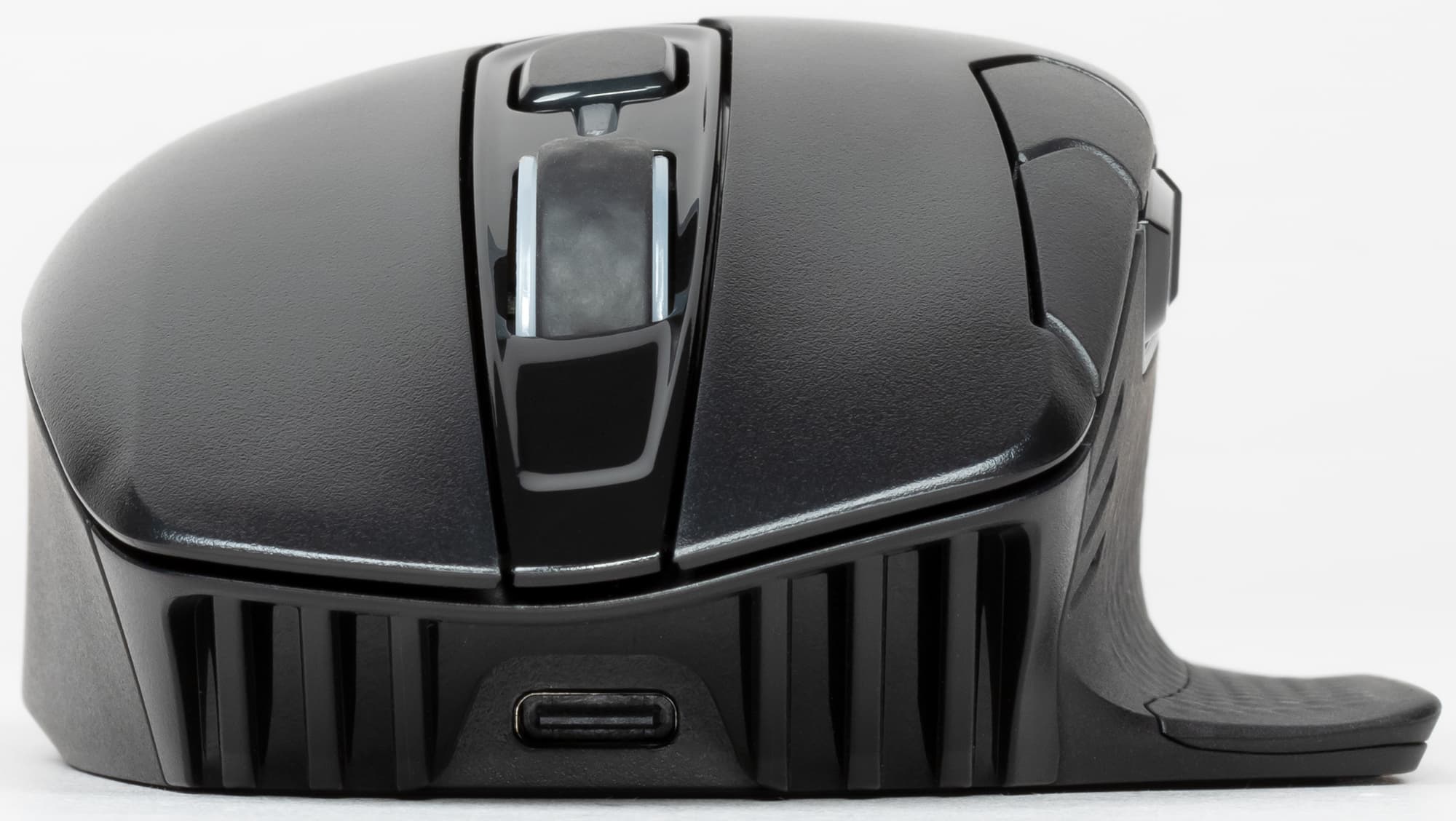 Мышка предназначена для правшей. Корпус имеет обтекаемую вытянутую форму. Слева он немного толще. С этой же стороны находится «плавничок» — подставка под большой палец.