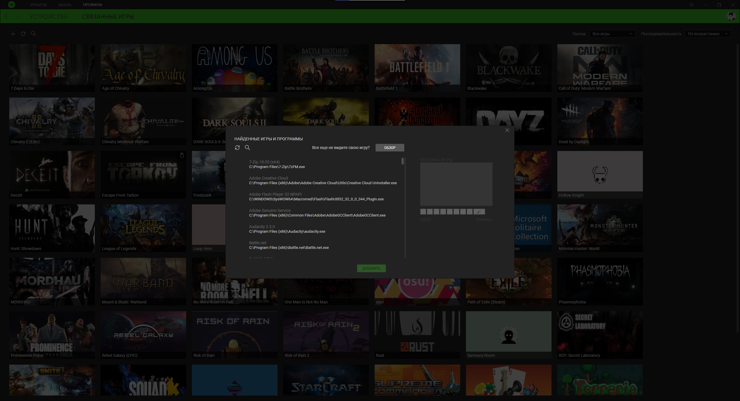 Во вкладке связанные игры можно посмотреть, какие игры ПО смогло само обнаружить, при желании можно самим указать прямой путь к ним.