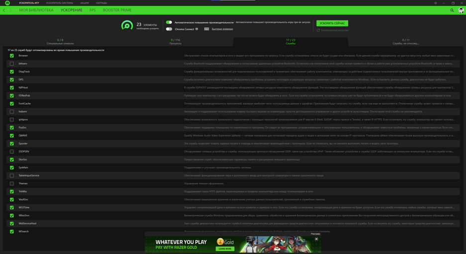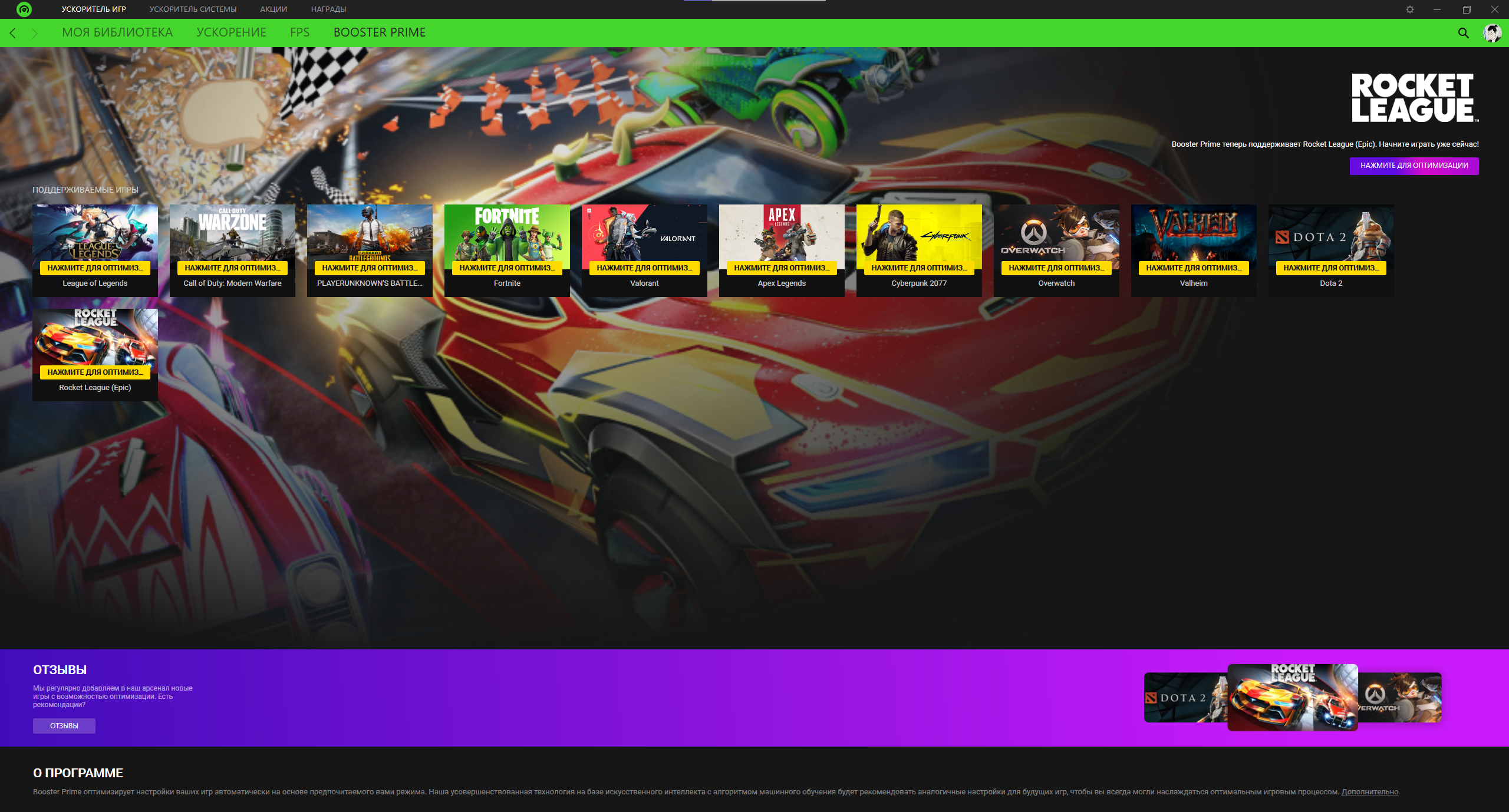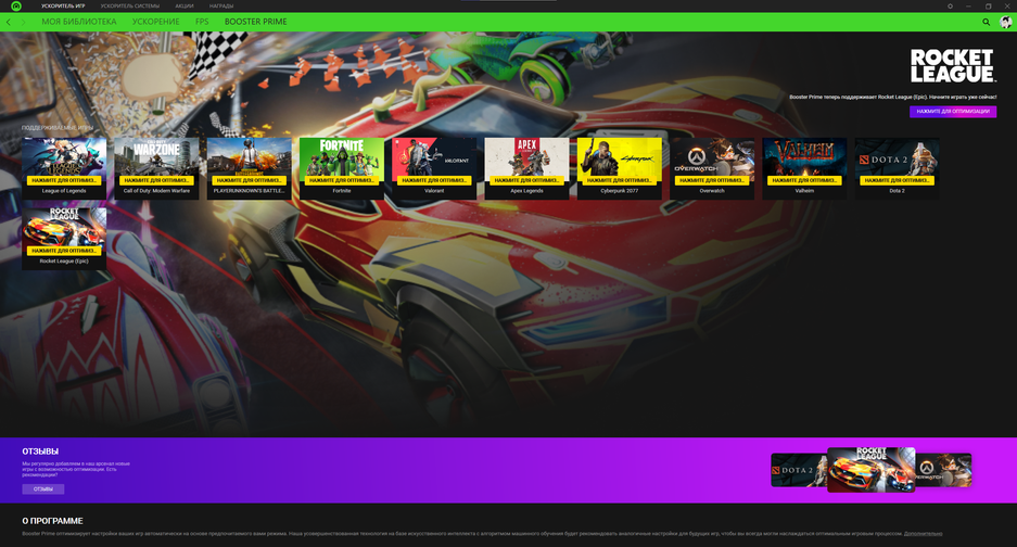 Также тут есть вкладка Booster Prime, который оптимизирует некоторые игры в зависимости лично от ваших предпочтений.