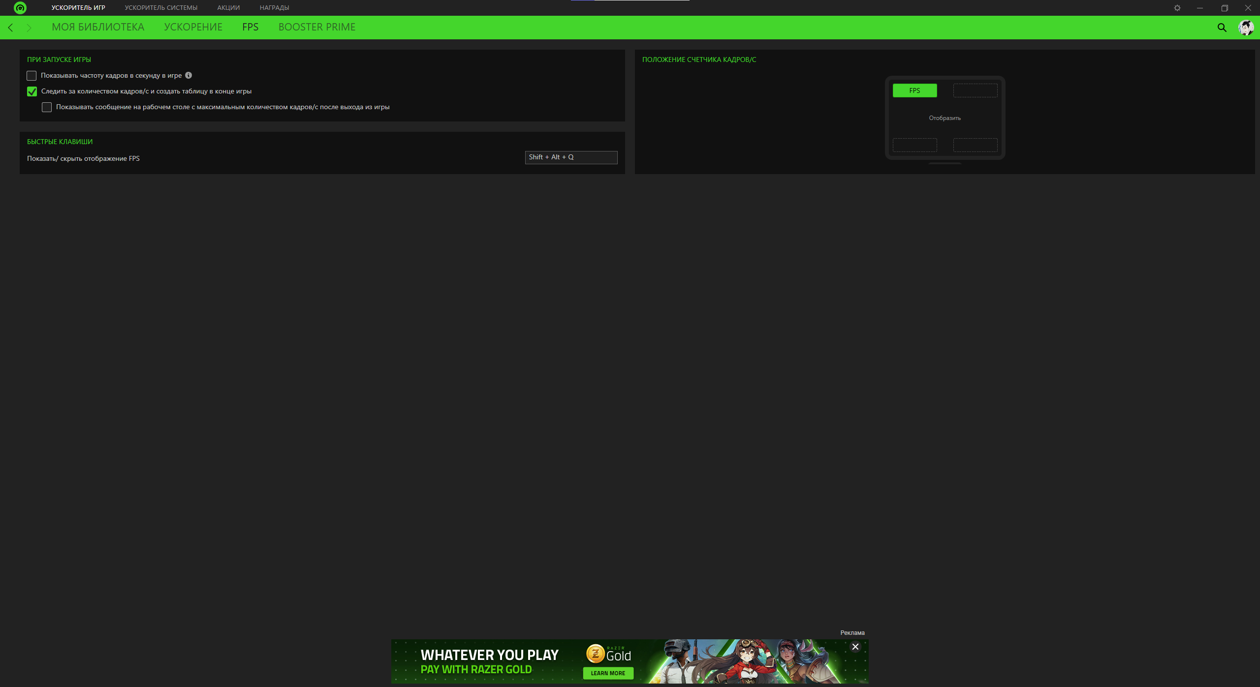 Также при желании тут можно настроить, чтобы во время игры выводился FPS окна.