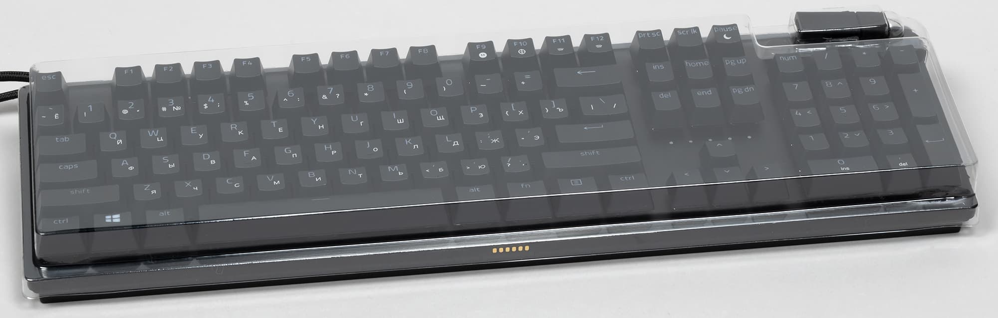 Стоит отдельно рассказать об установленных переключателях. Помимо известной оптической технологии, когда нажатие клавиши фиксируется не механическим замыканием контакта при нажатии клавиши, а за счет фиксации светового излучения приемником, после чего сигнал передается по цифровому интерфейсу в ПК. Такое решение обеспечивает минимальную задержку времени, всего 0,2 мс. Для сравнения, в случае механических переключателей задержка может быть от 18 до 30 мс, хотя вряд ли такие малые величины может заметить пользователь.