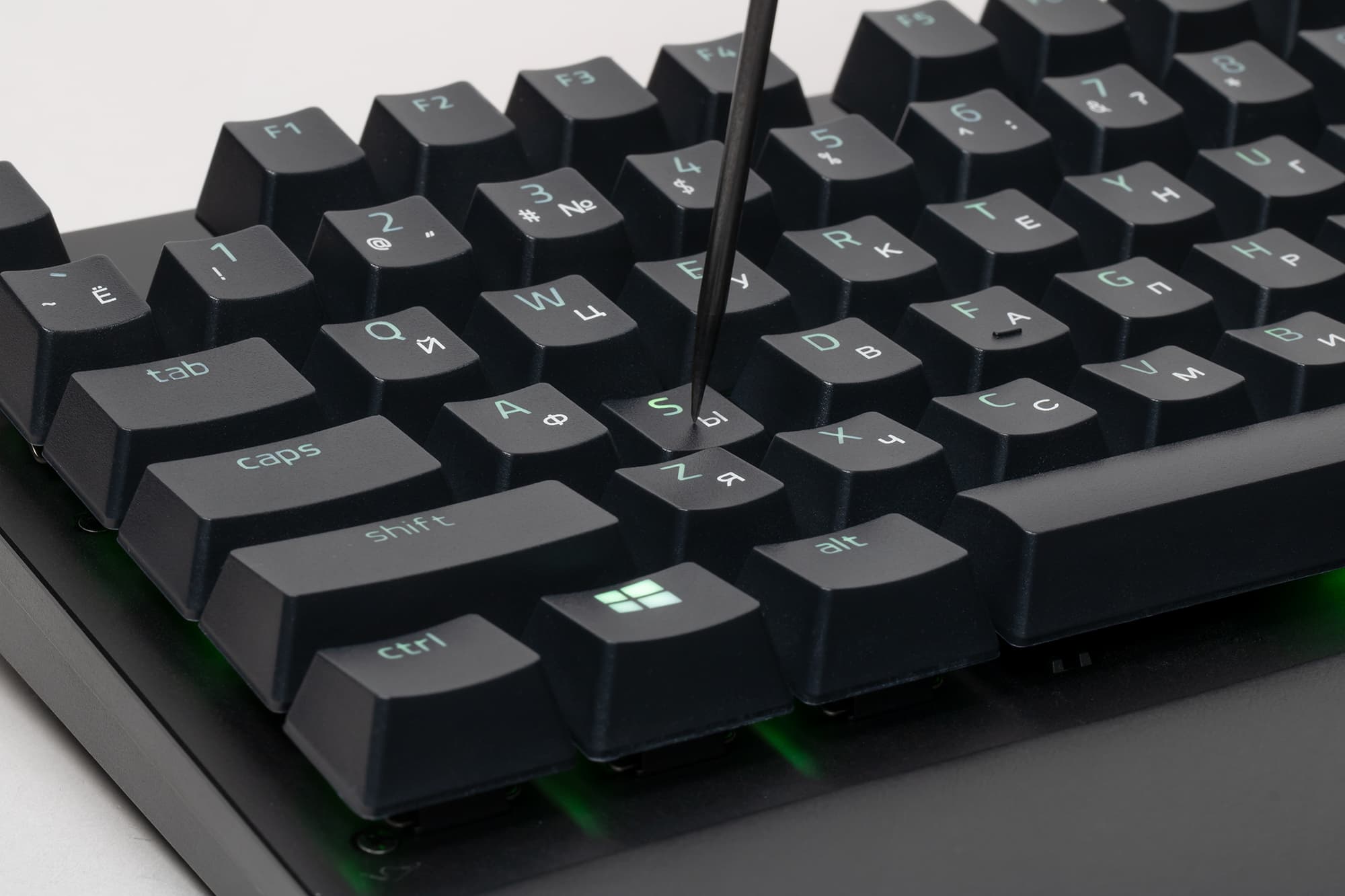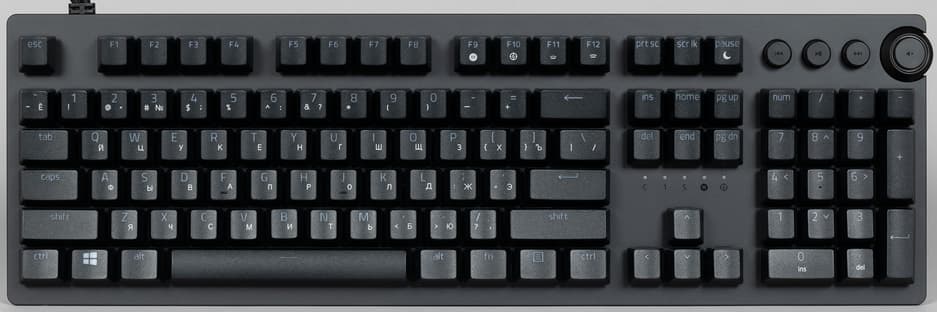 Также стоит отметить, что и колпачки сделаны по фирменной технологии Razer из высококачественного термопластика (PBT, ПолиБутиленТерефталат) с утолщенными стенками. Кроме повышенной прочности и стойкости к истиранию поверхность из PBT обладает шершавостью, приятно воспринимаемой тактильно.