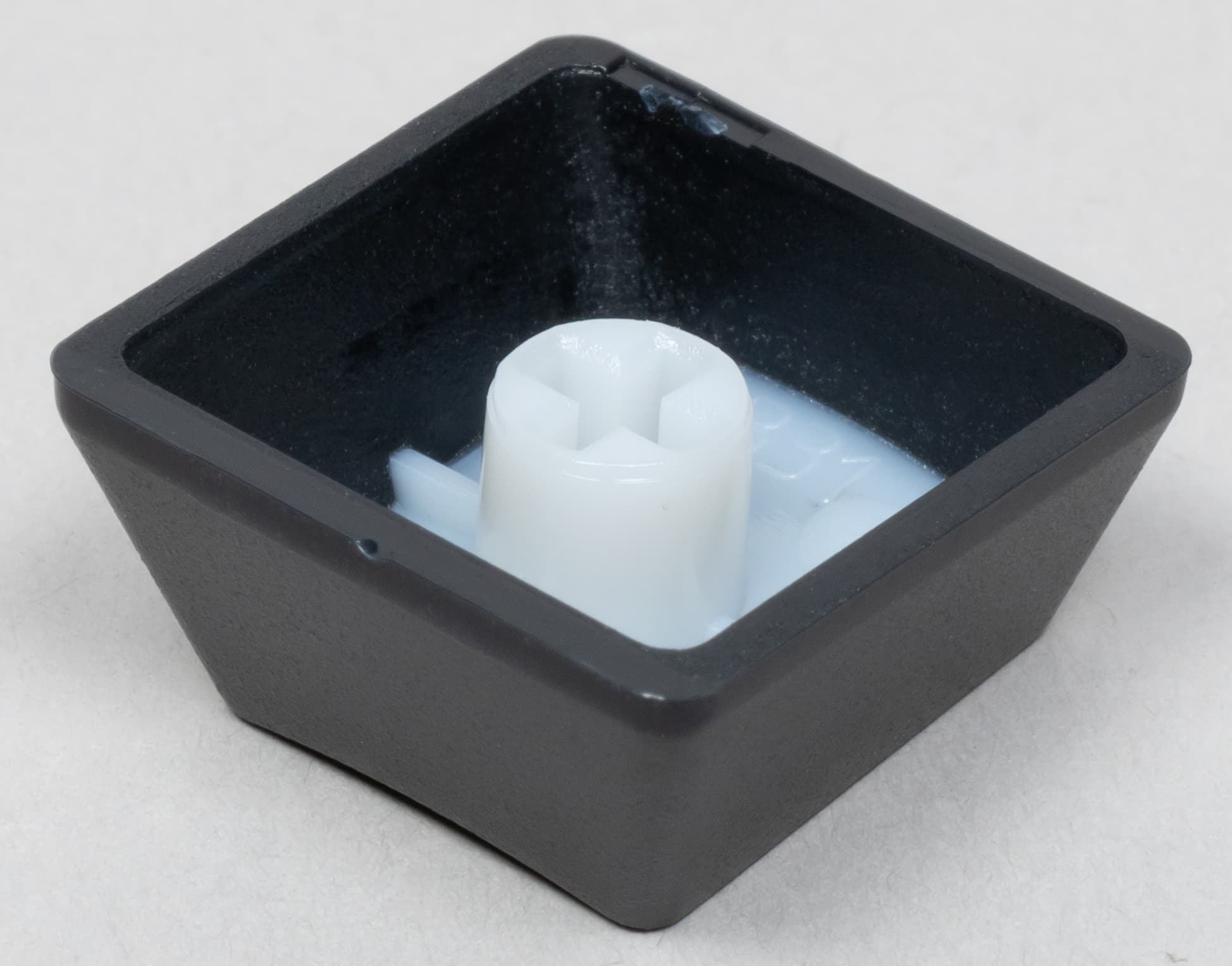При нажатии на клавишу пользователь продавливает пружину, что обеспечивает тактильные ощущения как при работе с классическими механическими переключателями.