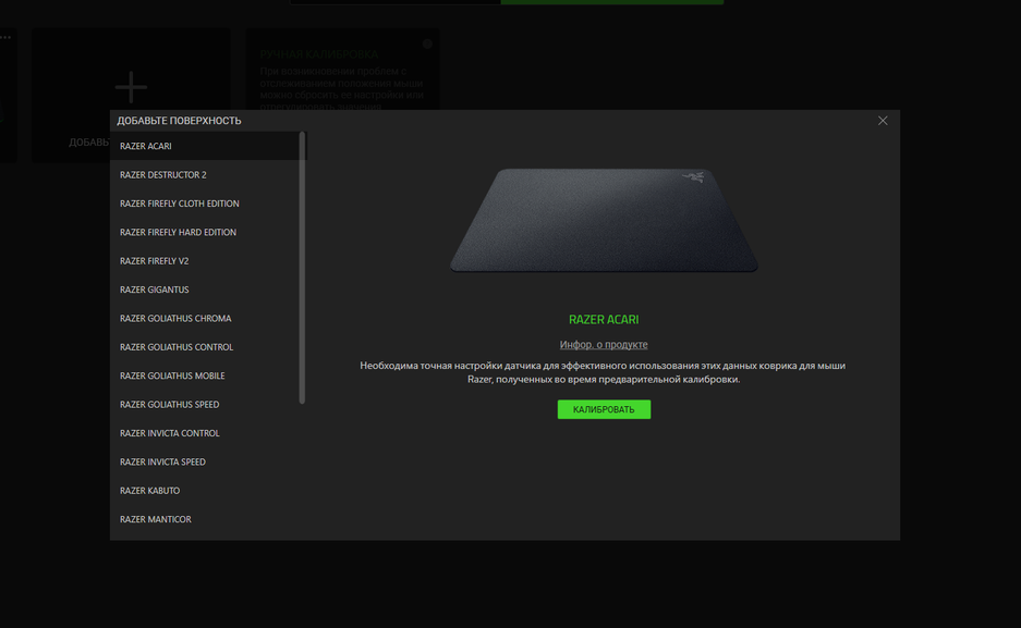 Во вкладке калибровка вы можете выбрать тип поверхности, по которой скользит мышка или выбрать «интеллектуальное отслеживание», которое само будет подстраивать под данный тип поверхности.