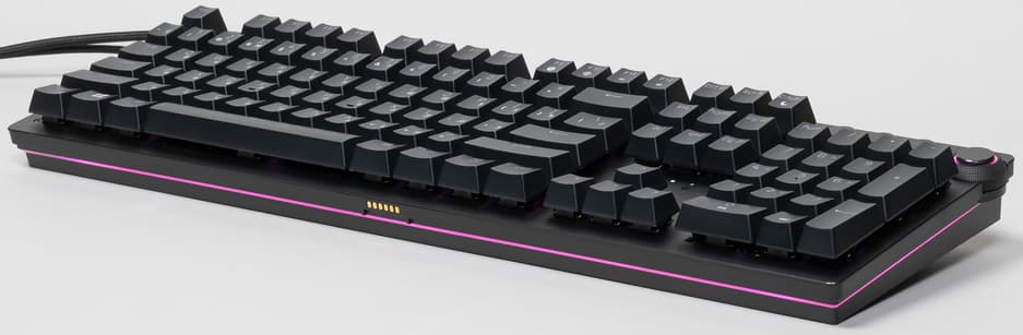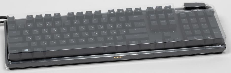 Применен шрифт с тонкими линиями. Клавиши оснащены RGB подсветкой и традиционно символы кириллицы освещаются хуже из-за расположения светодиода ближе к верхней стороне колпачков клавиш.