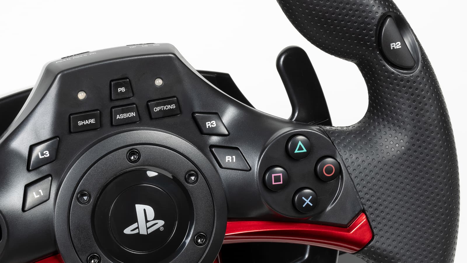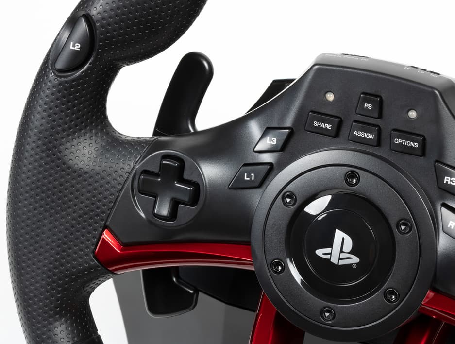 Игровой манипулятор на первый взгляд выглядит как стильный спортивный руль гоночного болида, по центру красуется логотип Sony PlayStation. Он тут неспроста. Hori владеет лицензией от Sony на использование фирменных программ и компонентов, что позволяет рулю иметь вибро-отклик как у контроллеров DualShock и быть совместимым с большим списком игр и работать в них как руль, а не эмулятор геймпада.