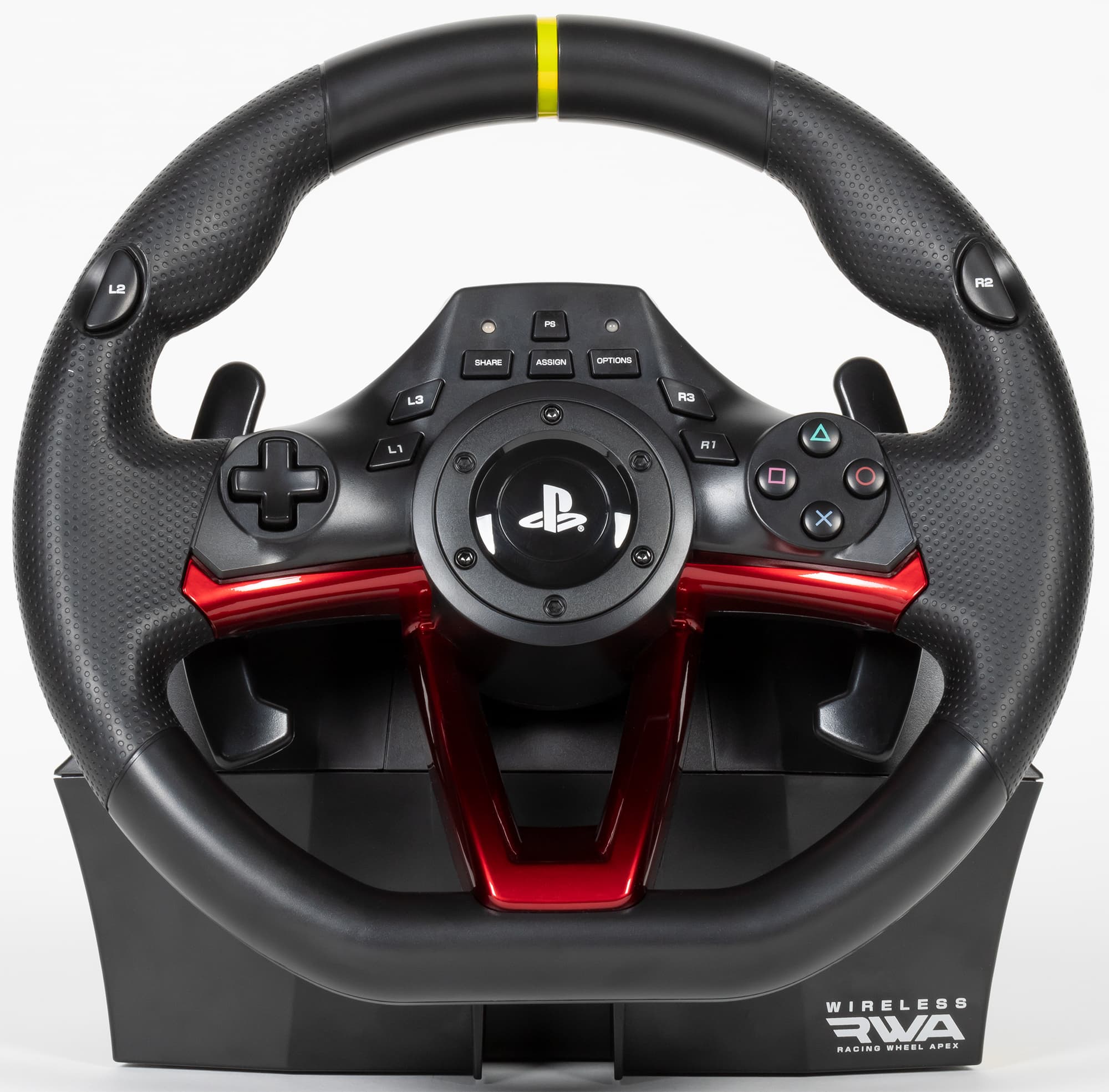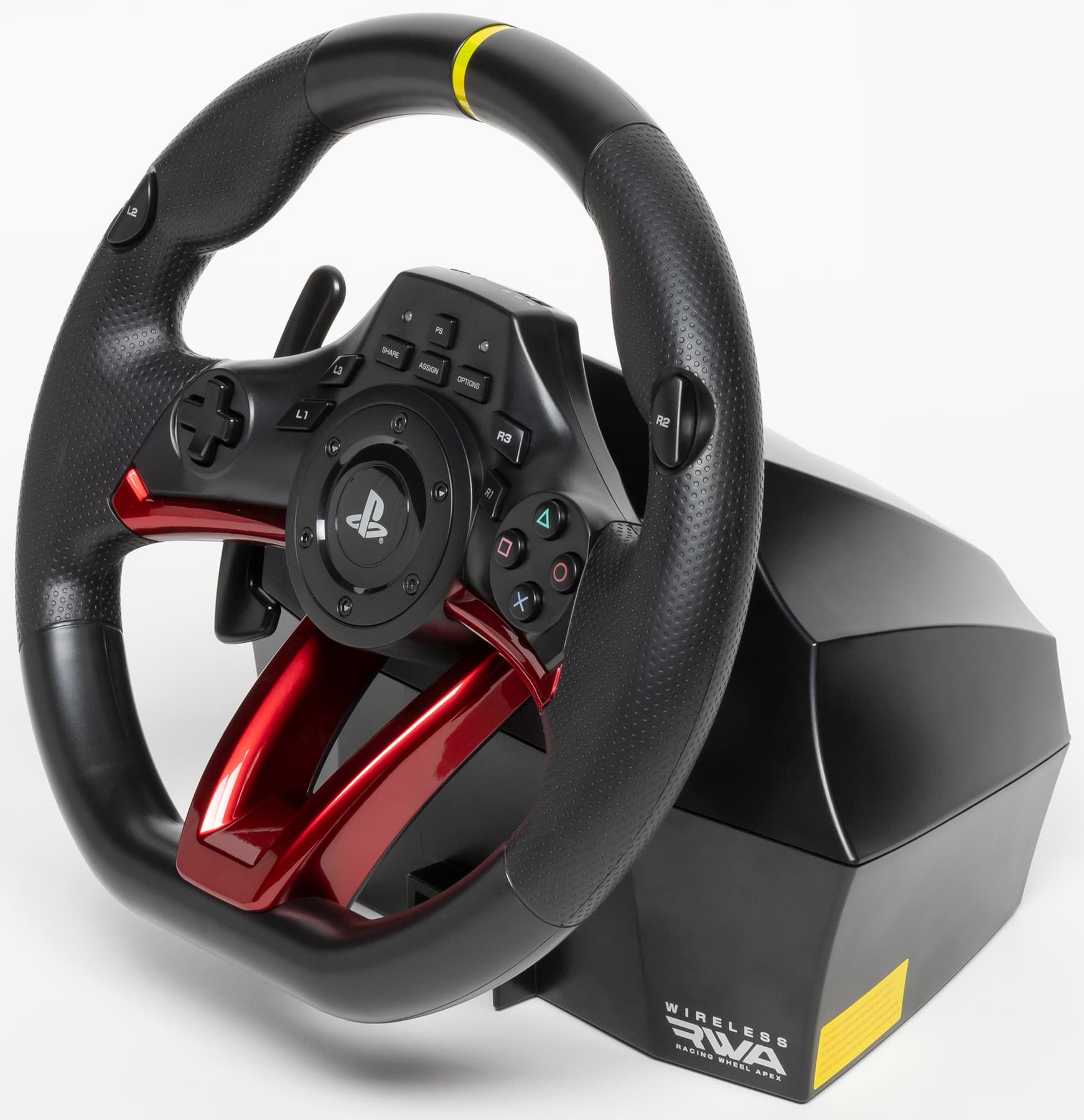Игровой руль HORI Wireless racing wheel Apex является одним из лидеров в сфере контроллеров для гоночных игр. Данное устройство предлагает за сравнительно скромные деньги (12 500 руб.) ощутить себя гонщиком Formula 1, с возможностью беспроводной связи, быстрой настройки клавиш без рысканья по настройкам игры, совместимости с PS4, PS5 и ПК и богатым списком совместимых игр на PS4, которым не каждый другой руль может похвастаться. Отдельно отметим, что поставляемый в комплекте провод для соединения педалей и руля коротковат и совсем не подойдет для больших столов.