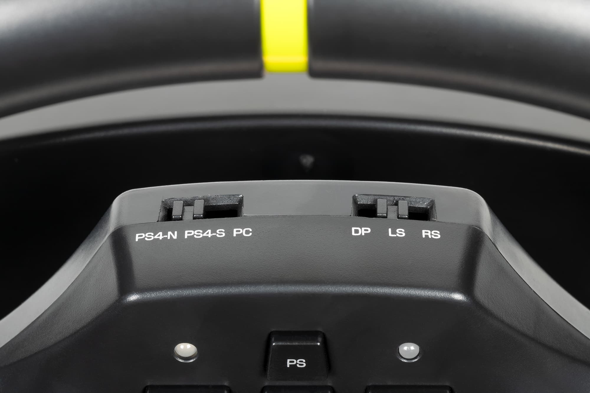 Перед сопряжением с устройством, следует перевести тумблер на верхней стороне руля в нужное положение, в соответствии с подключаемой платформой. Каждой из трех платформ соответствует свое положение. Там же есть тумблер отвечающий за смену типа управлением курсором в игре: DP – directional pad (крестовина), LS – left stick (левый стик), RS – right stick (правый стик).