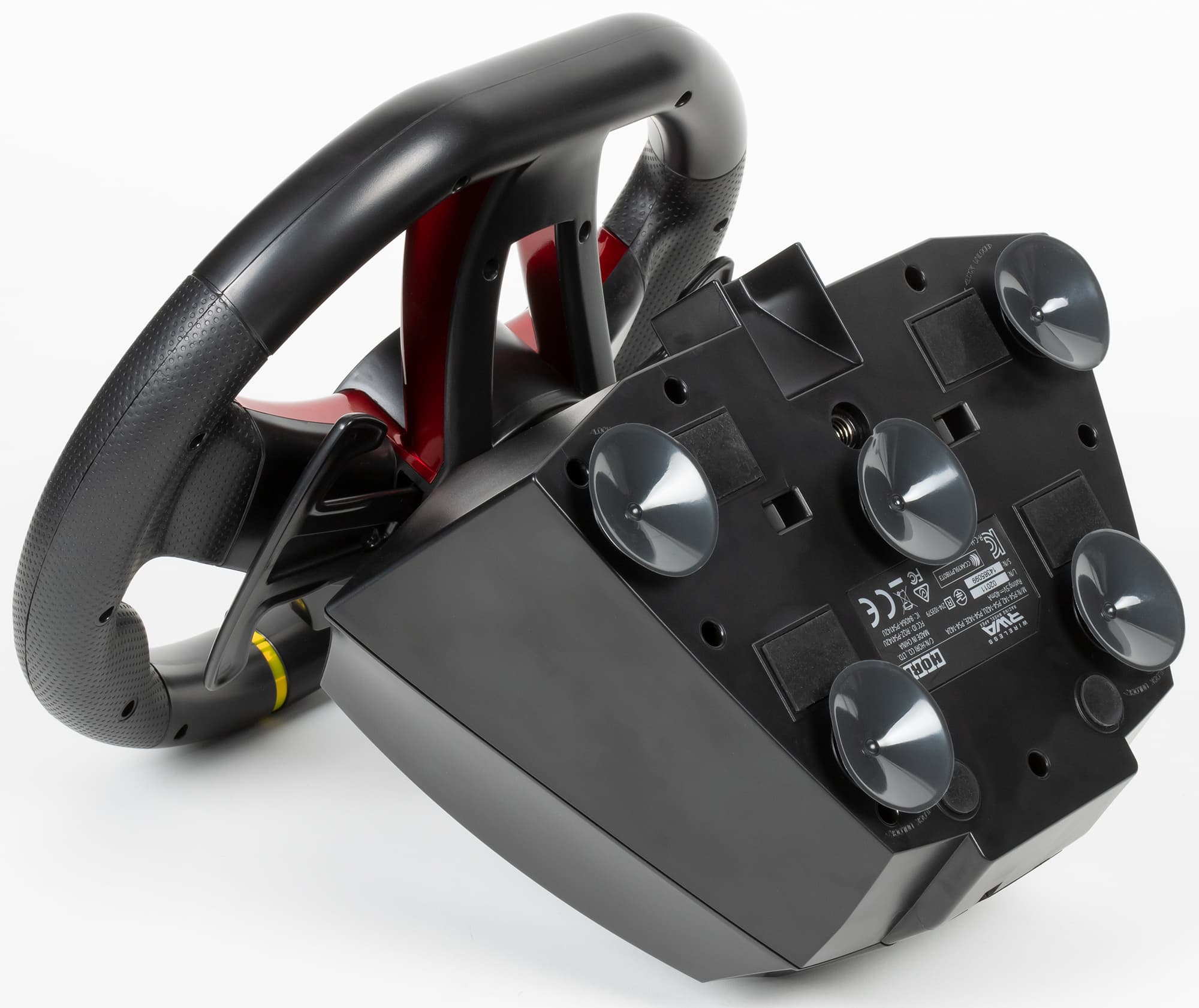 Руль состоит из двух частей: вращающаяся часть (рулевое колесо) и неподвижный блок управления, который отвечает за крепление устройства к поверхности и передачу сигнала на консоль или ПК. Связь осуществляется только посредством Bluetooth.