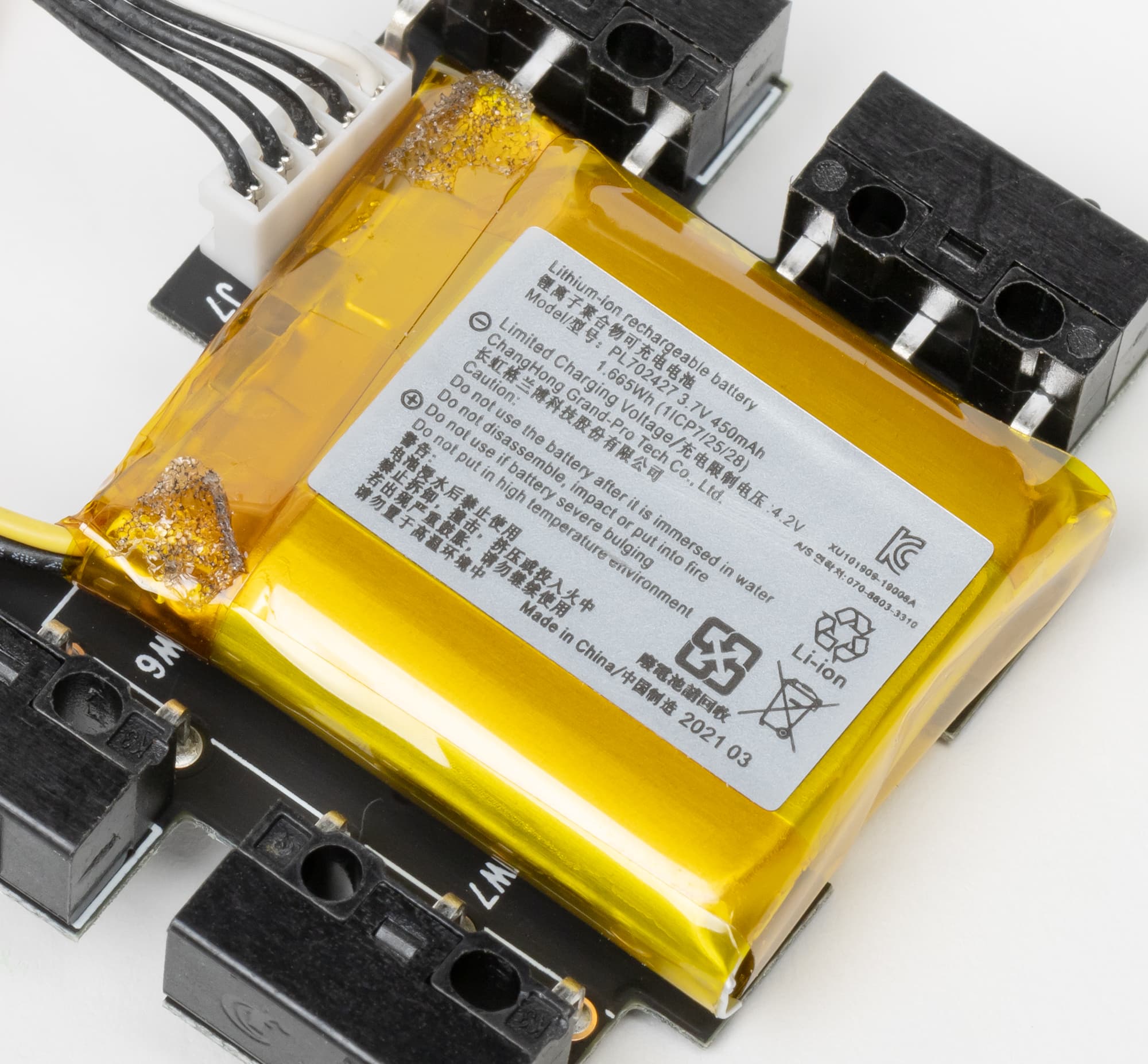 Аккумулятор прикрыт небольшим изолирующим черным чехлом. Его ёмкости в 480 мА • ч должно хватать на почти 70 часов автономной работы.
