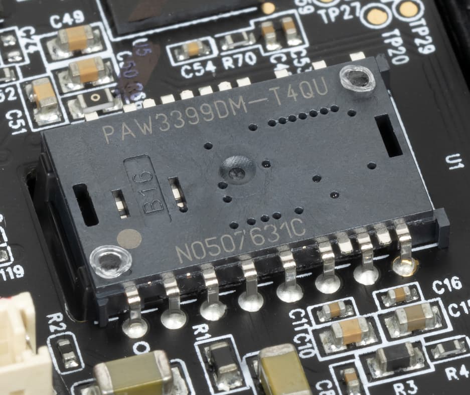 Оптический сенсор Razer Focus+ судя по маркировке PAW3399DM-T4QU производится на мощностях компании PixArt. Эту же модель сенсора можно встретить и в некоторых других игровых манипуляторах Razer.