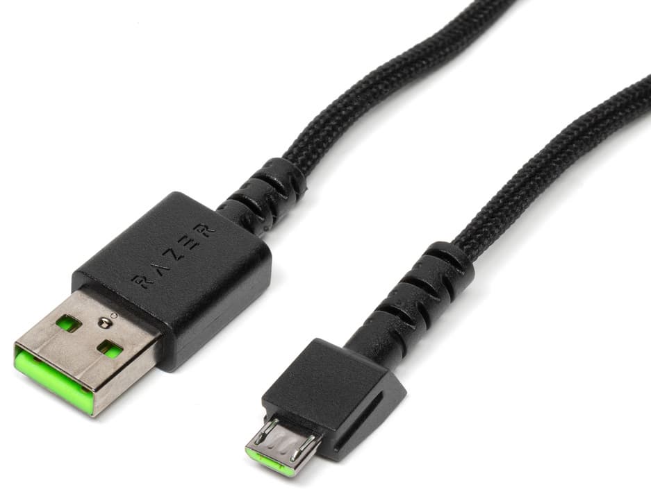Сам фирменный кабель оснащен защитным текстильным покрытием. Штекер USB type A снабжен гравировкой Razer; а на другом конце штекер с надписью – “Top”, однозначно подсказывающей как ориентировать кабель при подключении.