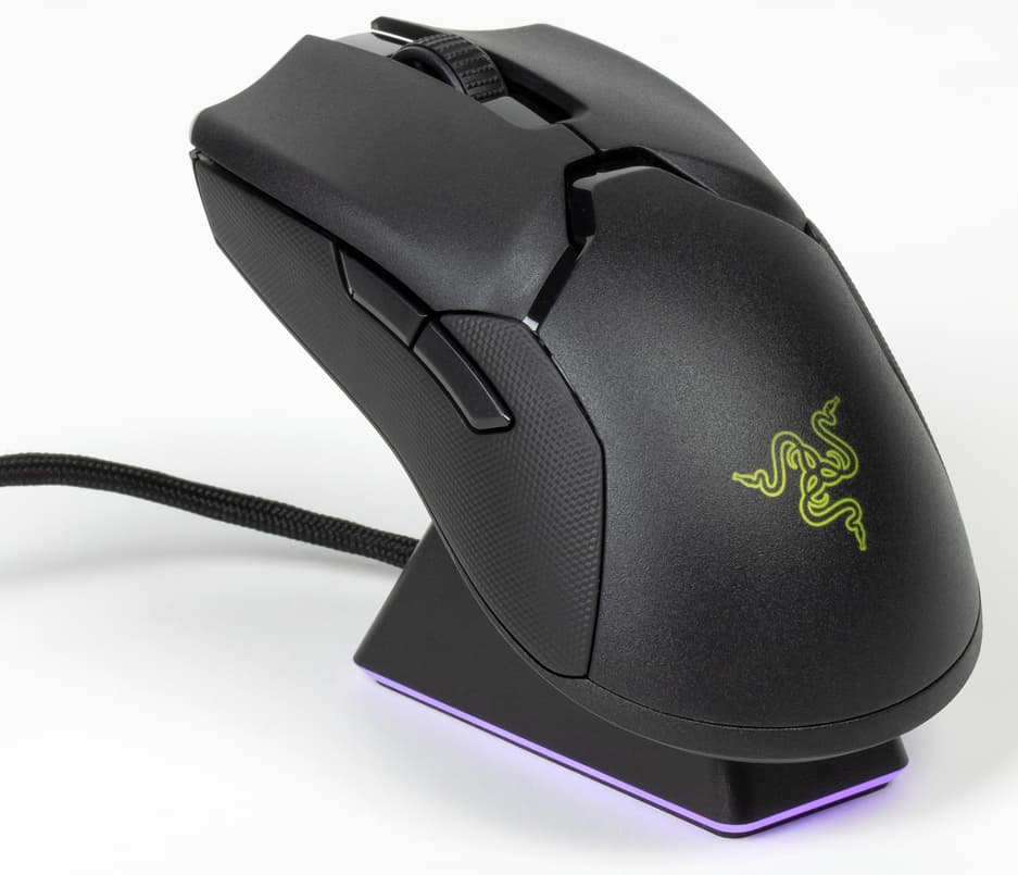 Игровая беспроводная мышь Razer Viper Ultimate оснащена точным оптическим сенсором высокого разрешения и фирменными оптическими переключателями. В комплекте с мышкой поставляется зарядная станция оригинальной конструкции с RGB подсветкой. Разберемся, чем примечателен этот манипулятор.
