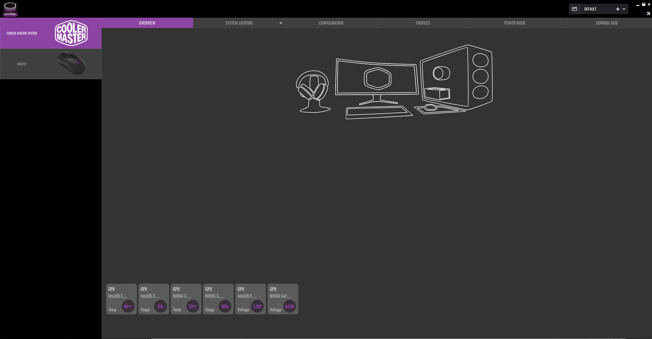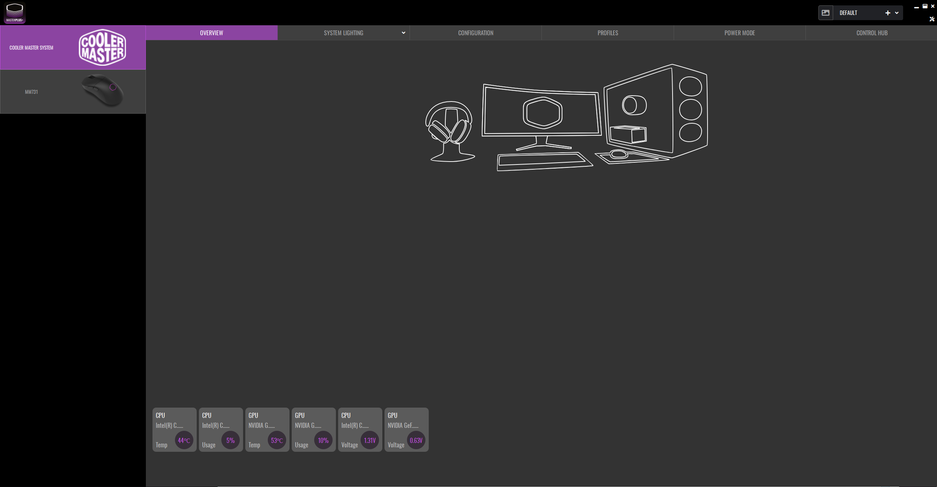 В левой стороне располагаются все подключенные устройства фирмы Cooler Master.