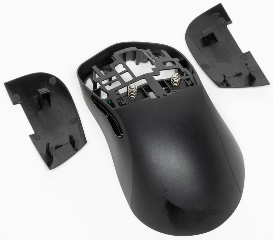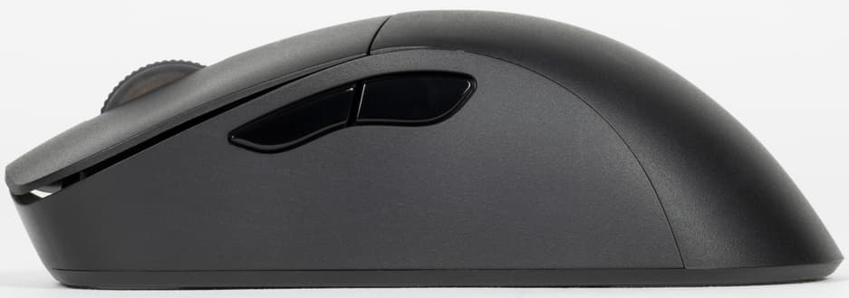 Правый бок устройства изогнут так, чтобы направлять мизинец и тем самым плотно зажимать мышку в ладони.
