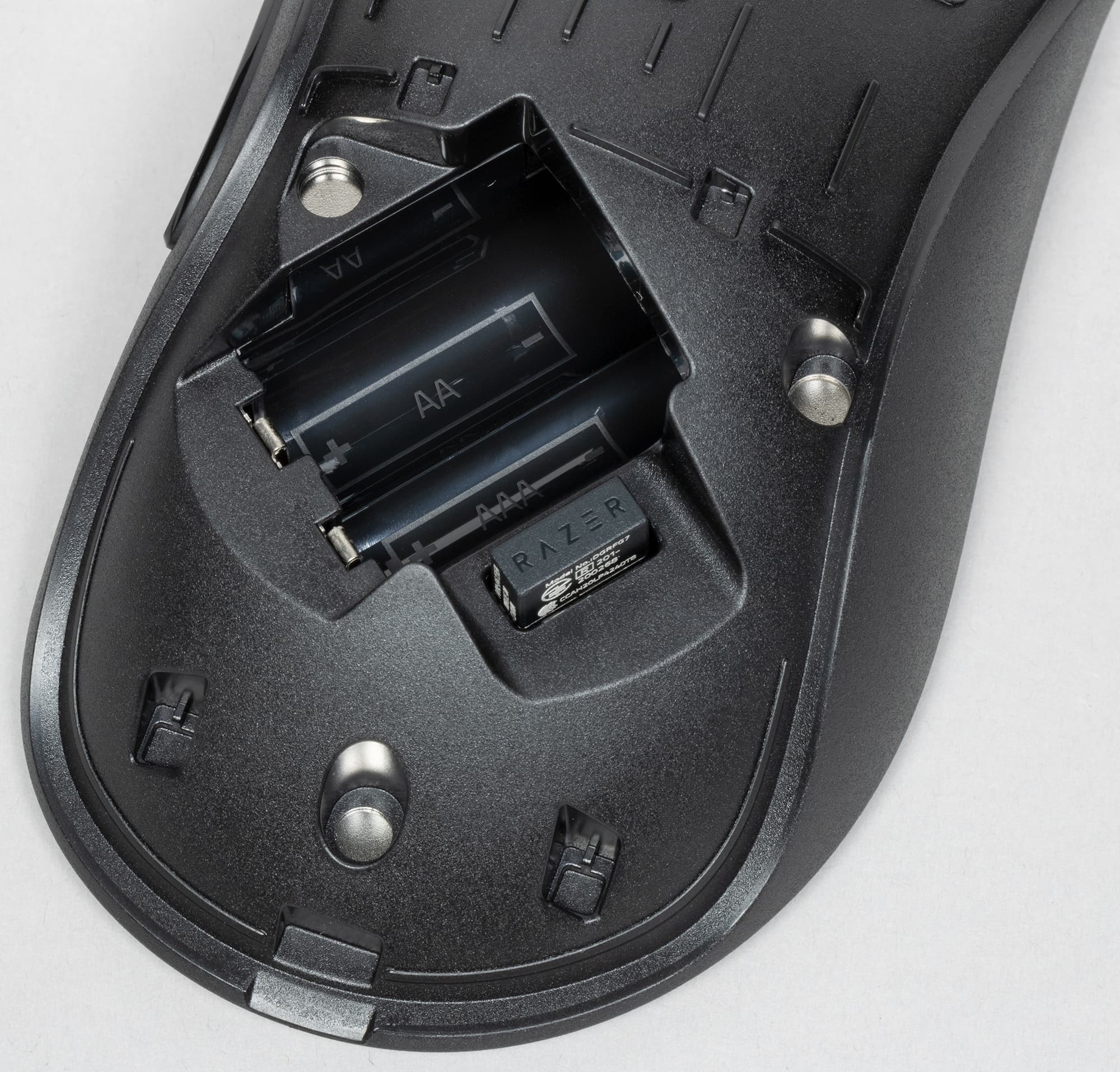 В мышку можно установить батарейки разных типоразмеров или даже сразу оба варианта и тем самым регулировать массу устройства в некоторых пределах. На официальном сайте представлен калькулятор времени работы с разными типами батареек.