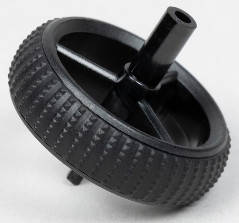 Контактная поверхность колеса прокрутки наделена рельефом в виде горизонтальных полос с пирамидальными выступами.